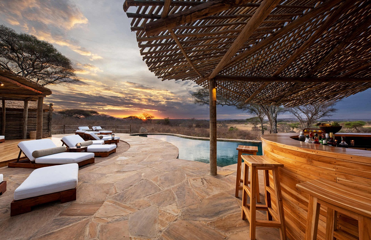 This 12-bungalow tented camp has some of the most expansive views in the southern Serengeti, nestled as it is into the slope of a granite out-cropping that overlooks a stretch of open savanna that wildebeests and zebras stream through every summer. The setup is temporary by design—the camp can pack up in just three days to follow the herds—but you’d never guess it: Campaign-style wood and leather furniture fills the tents, the bathrooms have copper taps, and there’s a thatched-roof, open-air lounge with upholstered chaises and crystal barware. While Pioneer sits lightly on the land—it relies on solar power and local products as it pursues a zero footprint—the safari experience is high-impact. In addition to the migratory populations, big cats, antelope, and elephants abound. Managers Tom River and Alison Mees and their team of 26 ensure that guests get a full immersion, which includes participating in the camp’s conservation and community projects through anti-poaching programs and animal-tracking excursions. –Andrew Sessa.